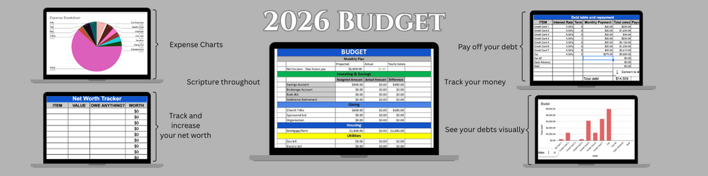 You’ll receive a clean, easy-to-use Google Sheets budget for every month and week of 2026, including: